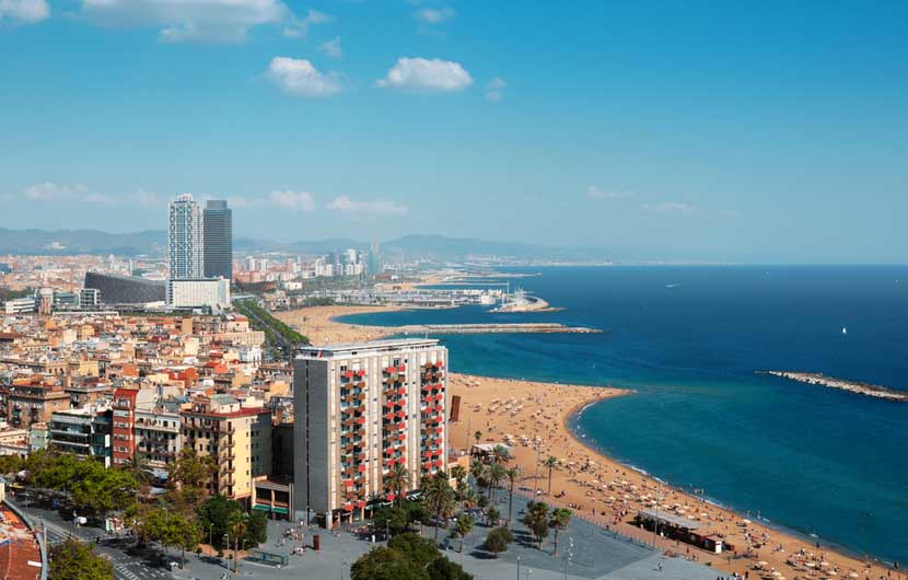 Η παραλία και ο περίπατος της Barceloneta στη Βαρκελώνη Η Ισπανία είναι ένα ζωντανό παράκτιο καταφύγιο που προσελκύει τόσο τους ντόπιους όσο και τους τουρίστες που αναζητούν ήλιο, άμμο και χαλάρωση.